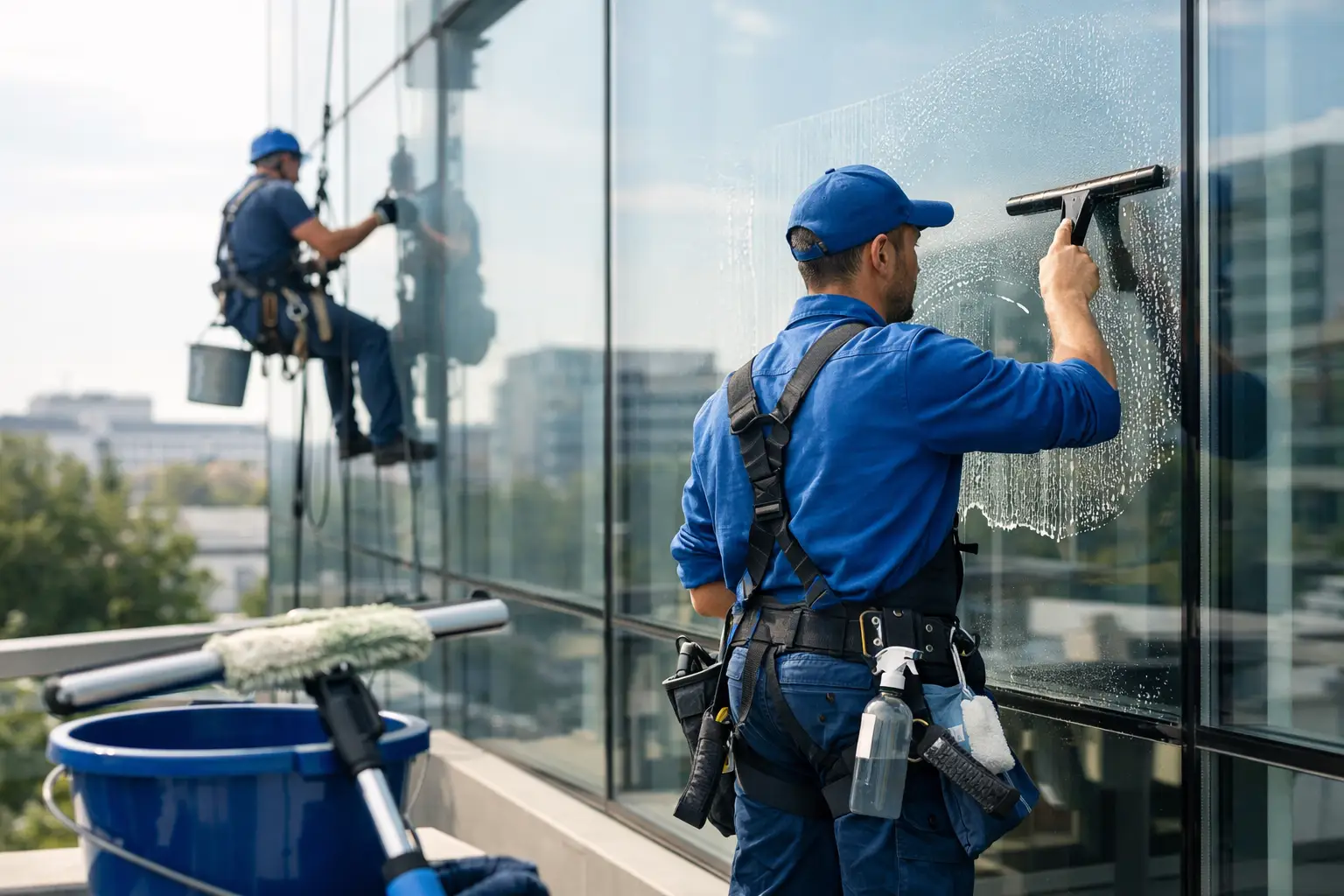 Professional glass cleaning normally involves removing dust, fingerprints, rain marks, bird droppings and general grime using the right tools and cleaning solution. The goal is a clear finish without streaks or haze.